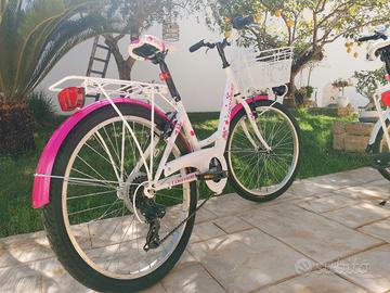 Vendo per passaggio a modello 28 numero due City Bike di qualità marca Torpado, come in foto, usate pochissimo e tenute in perfette condizioni ( acquistate nuova quattro anni fa e pagata € 300). Nessun graffio completa di cestino, porta oggetti posteriore, campanello, cambio a 6 velocità, luci anteriori e posteriori, sella confort e pneumatici 24x1.75. Vendo al prezzo di € 100 cadauna è disponibile solo quella con livrea fucsia .