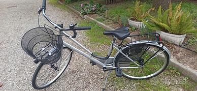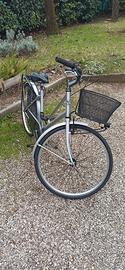 Bici nuova, linea classica color argento/ quarzo in condizioni perfette. Dotata di ampio cestino, cavalletto campanello. NB la bici per la particolare geometria e" adatta sia a una ragazzina che ad una persona adulta di piccola statura ( anche se arriva a 175 cm).