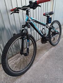 MTB TORPADO JAGUARO taglia 24 POLLICI ideale da 7 a 12 anni, freni v-brake, forcella SRsuntour escursione 80 mm , ruote con sgancio rapido quick release, cambio shimano 21 velocità, portaborraccia, borsa sottosella con camera d'aria di scorta, qualche segno sulla vernice come da foto, solo ritiro in zona, ideale per le prime uscite in famiglia e con gli amici