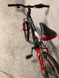 Bicicletta raggio 20 com forcella armotizzata frontale e ammortizzatore centrale per la parte posteriore. , cambio shimano a 6 rapporti , usata ma teunta bene e funzionante perfettamente. Copertoni in ottimo stato come i freni e la catena . Si tratta di una bici di un certo livello e non di una classica MTB. Vendk per cambio misura . Questa penso sia adatta fino as un’altezza di circa 130-135 cm . Non spedisco solo ritiro a mano