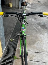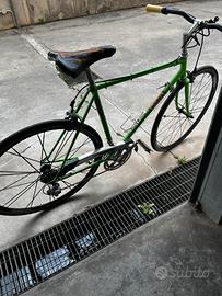 Bici vintage restaurata come da foto , il cambio funzionano le ridotte posteriori bene ma non le corone anteriori, bisognerebbe sistemarle . Prezzo trattabile , ritiro a mano .