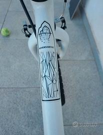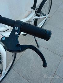 Bici da trekking bambino 6-9 anni (120-135 cm) 20''. Monovelocità. Copertoni ibridi. Telaio in acciaio. 2 freni a pattino V-Brake. Carter proteggi catena e corona. Luci a pile, campanelli, catarifrangenti sulle ruote. Misure della bici 140x80 cm.