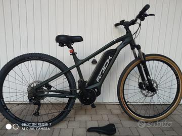 Marca Rock Machine. Tipo E-MTB. verde scuro. Diametro ruote 29". Batteria 500W cambio 9 rapporti. Doppia sella con anche originale. Dischi freno maggiorati. Mono ammortizzata. Acquistata nuova 2 anni fa. Km 2.200.