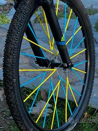 Vendo rockrider st100 taglia L/27.5 modificata con copriraggi alternati gialli e azzurri e manopole odi gialle usata come nuova prezzo 230€ ( trattabile)