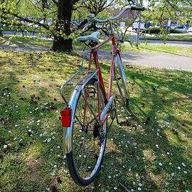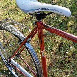 Stupenda perfettamente funzionante, cambio a Leva sul Telaio 4 Marce introvabile, si cede a malincuore , lavori effettuati: sella Cannondale, guaine e cordine nuovi con pattini freni, pedali nuovi copertoni ottimo stato visibili segni di usura degli anni, conservata lucidata no ruggine marciante pronta all’uso. Possibilità di consegna se in zona.