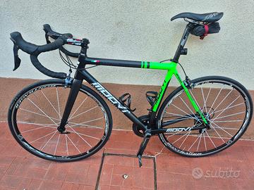 Telaio sarto fatto su misura, taglia 56, per il figlio di Saronni, io l'ho comprata dalla squadra in cui correva, la viris vigevano. cambio shimano ultegra a 11 velocità 11-30 con ruote bontager rxl in alluminio per copertoncino. corone anteriori 52x36, pedivella 172.5. ruote per copertoncino. bici con segni di utilizzo ma perfettamente funzionante. il telaio è in carbonio e fatto a mano in Italia. vendo senza pedali, garmin e fanale posteriore. Ci sono da cambiare solamente le gomme delle appendici dei freni, io le ho cambiate ma probabilmente ho preso quelle per un modello ultegra diverso e non sono perfettamente aderenti al freno.