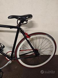 Vendo bici scatto fisso artigianale in acciaio, perfetta per uso urbano o pista. Possibilità di convertirla facilmente in bici normale girando il cerchione (mozzo flip-flop). Montati frenini leggeri (anteriore e posteriore) che si possono rimuovere in un attimo per setup puro fisso. Telaio e forca in acciaio robusto, reggisella manubrio in alluminio leggero.Sella e pedali nuovi, in ottimo stato.Cerchi bianchi 700c con gomme rosse, catena bianca. cerchioni girano dritti perfetti. Disponibili anche due cerchioni extra inclusi nel prezzo!Bici in ottimo stato generale, ben tenuta, pronta all'uso. Ideale per ciclisti esperti o principianti fixie. Solo ritiro a mano. Contattami per info o prove!