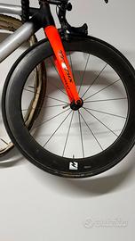 Ruote Reynolds profilo 60mm per copertoncini, mozzo posteriore Miche Primato flip flop, fornite con slitta pignone Miche e diversi pignoni inclusi.