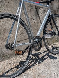 vendo per inutilizzo bici scatto fisso CORVLEX taglia L forcella in carbonio guarnitura Miche Advance regalo se interessa due manubri uno da corsa nastratp rosa e manubrio MTB oversize manopole rosa. se interessati mando altre foto