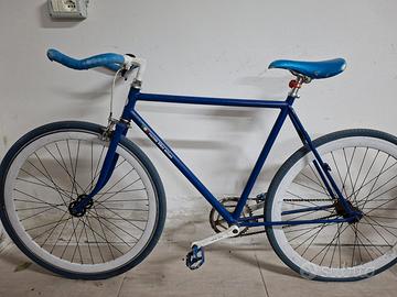 Vendo per inutilizzo bellissima bici a scatto fisso realizzata da Custom Bikes Milano (Modello M.S. 028). La bici ha un design unico, curata nei minimi dettagli cromatici tra il blu opaco del telaio e il bianco dei componenti.