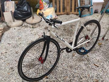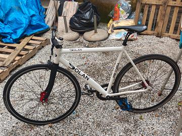 Vendo bici come da foto con bellissimo telaio dolan pro cursa. la bici è perfettamente funzionante con freno anteriore e mozzo scatto fisso . è possibile anche girare la ruota posteriore per avere una normale bici e in tal caso c'e la predisposizione per aggiungere un freno posteriore. Usata poco presenta qualche segno di ruggine e un sellino un po rovinato ma nel complesso è ottima