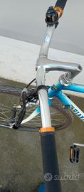 Bici scatto fisso M 53. Con le seguenti parti nuove: sella di marca, pedali, cerchi e gomme, manubrio e maniglie, freno e manopola freno, reggisella. Telaio con segni dovuti all',uso. In sintesi tutto nuovo eccetto telaio della Vianelli e pedivelle. Ho anche accessori: pedali Shimano ad aggancio rapido, secondo manubrio. Prezzo trattabile.