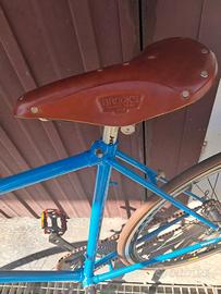 Bicicletta scatto fisso su telaio Bianchi sella modello vintage e manubrio in alluminio. ritiro a mano