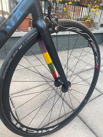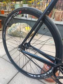 vendo bici a scatto fisso con telaio super nova taglia 56 con forcella in carbonio(presente un graffio sulla scritta) ruote miche pistard sistema centrale strong lite attacco manubrio cinelli manubrio cinelli reggi sella cinelli sedile fi:di'k NON SPEDISCO SOLO RITIRO A MANO A MILANO