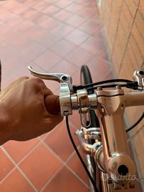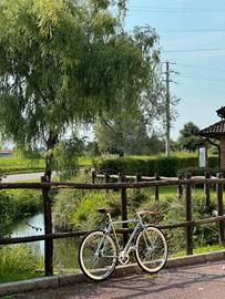 Vendo per inutilizzo bellissima bici cromata "Margot Cycling" Ather, con di ring OI LUXE e porta bottiglia in vera pelle (accessori per un valore di 115€) Usata pochissimo Caratteristiche: * Telaio in acciaio Hi-TEN resistente, assorbe bene le vibrazioni * Forcella TIG per maggiore solidità * Ruote da 28" con cerchi in alluminio a doppia camera * Copertoni 28-622 comfort city a media pressione * Trasmissione versatile: utilizzabile sia a ruota libera che scatto fisso * Rapporto 46:18 equilibrato e adatto alla citta * Guarnitura in alluminio con corona da 46 denti * Movimento centrale sigillato NECO * Freni anteriori e posteriori in alluminio, efficienti e facili da smontare * Manubrio sportivo tipo pursuit in alluminio con nastro antiscivolo * Sella comfort sport e reggisella in alluminio * Pedali WELL GO compatibili anche con strap per uso fixed Visibile in zona Milano