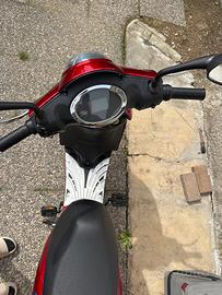 Bici scoter elettrico con cavo per alimentarlo luci anteriori a led e posteriori 2 specchietti 2 cavalletti laterale e centrale 2 bauletti apribili con chiave porta oggetti cruscotto digitale Frecce direzionali gommato nuovo si ricarica pedalando vendo per inutilizzo e nuovo tenuto in box