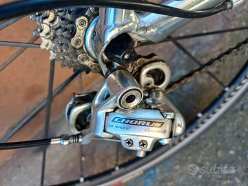 bici costa scott alluminio usata come muletto, forcella carbonio, reggisella carbonio, sella prologo, gruppo misto campagnolo chorus e record 10v, leve carbonio, cassetta titanio, pedivella 53 39 170, ruote fulcrum racing zero. la pista frenante delle ruote è un po' usurata, manca leva del deragliatore anteriore per passare dal 39 al 53 come da foto. vista piaciuta solo consegna a mano zona piacenza , pavia, lodi..