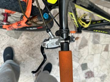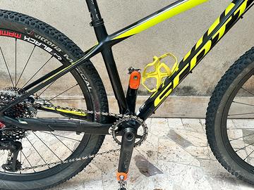 Vendesi bici Scott Scale 27,5 in carbonio montata con forcella kaschima , freni Formila R1R gruppo XX1 cerchi in carbonio Black Mamba , inoltre a corredo ci sono due ruotr in alluminio con pacco pignone xx1 e anche due cerchi space carbon ma uno è dannegiato , infine é previsto un ulteriore pacco pignone xx1 . La bici è in bione condizioni con la normale usura .