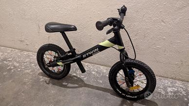 Telaio in alluminio, dotato di freno sul manubrio e ruote 12" con veri copertoni, sella regolabile.