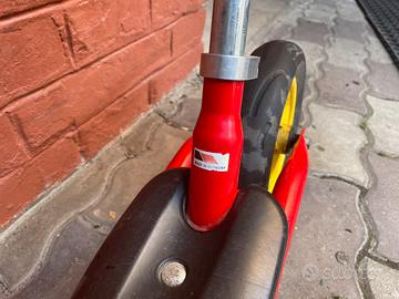 Balance bike, super apprezzata da mia figlia. Altezza sella modificabile, appoggio centrale per i piedi e per esercitare l’equilibrio, manubrio con prese antiscivolo originali. Nessun difetto strutturale, graffi da usura.
