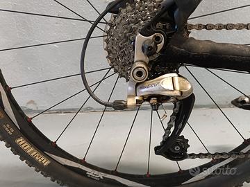 Shock Blaze, tutta in carbonio compreso manubrio, taglia 54 ( M ), allestita Shimano deore XT, forcella Fox f80, ruote da 26. Visibile zona Sestri Ponente