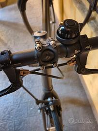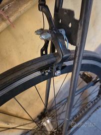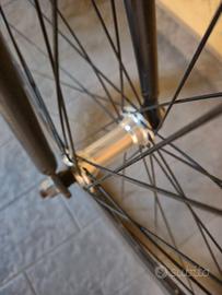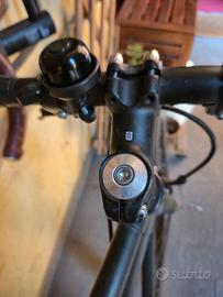 Vendo bici single speed (senza cambio), perfetta per uso urbano. Usata ma ben tenuta. - Telaio verniciato nero opaco - Cerchi neri con profilo sportivo ed hub anteriore in alluminio lucidato - Manubrio a goccia (drop bar) con nastro in similpelle traforato marrone – elegante e confortevole - Freni a pattino calibrati e funzionanti - Attacco manubrio regolabile - Campanello