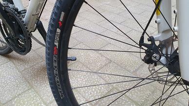 Bici in alluminio in perfette condizioni, in aggiunta vari accessori come da foto ed inoltre camera d'aria di ricambio, 4 caschetti, pompa da terra con manometro e altro. Unico difetto qualche graffietto sul telaio poco visibile.