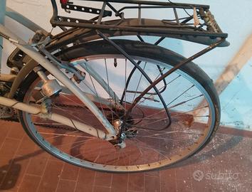 bici di decathlon doppio cambio modificata per uso cittadino, ruote 28. Da controllare ferma da almeno un decennio.