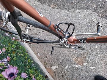 bellissima bicicletta Sport uomo. molto scorrevole. color bronzo. forcella e carro in carbonio... con pedali flat. tenuta molto bene. nessun lavoro da fare