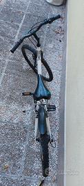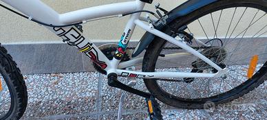 bici sportiva btwin,24".Cambio shimano revoshift.Ottime condizioni perché usata pochissimo.Sella e parti in gomma come nuove,vernice intatta(presente anche protezione per la catena).manca solo un carter anteriore perso nel trasloco(cmq la bici non ne era fornita all'acquisto).ruote quasi nuove,come da foto