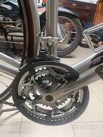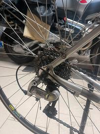 Vendo bici sportiva Olimpya in ottime condizioni tutta originale e guarnitura completa Schimano , con tripla sulla moltiplica Schimano Sora , e il cambio Schimano gruppo Tiagra , comando cambio e moltiplica sulle manopole . Ruote sgancio rapido .