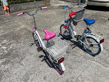 Vendesi 2 biciclette pieghevoli da passeggio stile graziella una bianche con finitura blu ed una rosa. condizione buone usate poche volte per andare al mare Seggiolino NON incluso