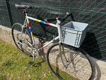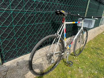 Bici da corsa vintage modificata per confort. Dispongo di tutte le sue parti originali: manubrio corsa, freni, sella…. Gruppo completo e ruote Shimano 105