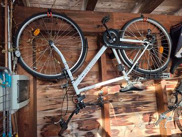 bicicletta marca ROUTE 66 con cambio schimano . viene venduta con le borse in stoffa posteriori e cesta anteriore