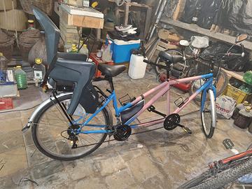 Vendo bicicletta tandem artigianale pari al nuovo tranne il seggiolino per i bambini montato dietro nessun lavoro da fare porta all' uso