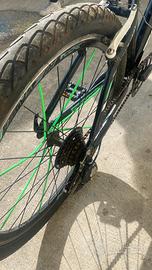 vendo bici teknobike 26”. la bici è una mtb ma è stata modificata per usarla solamente come “wheelie bike” . ho cambiato manubrio, manopole, delle gomme lisce , la bici ha 6 marce e davanti 3, entrambi freni a pattino. ha solo un difetto che verra riferito in privato con un video