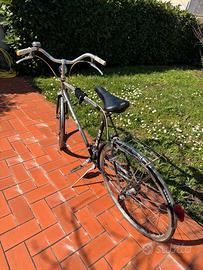Bici con telaio alto; cambio a leve su tubo obliquo; usata; funzionante; usura del tempo