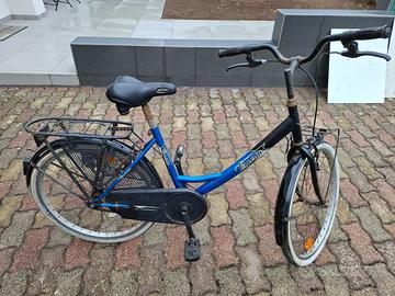 Bicicletta telaio donna, ruote da 24 pollici, in discrete condizioni, qualche punto di ruggine dovuta all'usura del tempo. Le gomme tengono ma sarebbero da cambiare. Le luci non funzionano.