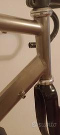telaio in Titanio Nevi made in Italy misura 56c/c tubo piantone e 55 c/c tubo orizzontale con forcella in carbonio per freni rim brake in ottime condizioni completa di reggisella in titanio .