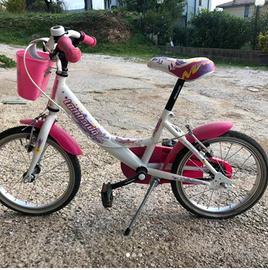 MODELLO " MARIPOSA ". ARTICOLO USATO DI OTTIMA QUALITA CON TELAIO IN ACCIAIO ELETTROSALDATO, MOVIMENTO CENTRALE SU SFERA, CERCHI IN ACCIAIO, SELLA MORBIDA, FRENERIA OMOLOGATA PER BAMBINI TIPO V-BRAKE. LA BICICLETTA VIENE FORNITA COMPLETA DI CESTINO, CARTER COPRICATENA E CAMPANELLO DIN DIN, MANCANO LE ROTELLE. SPEDIZIONE ESCLUSA.
