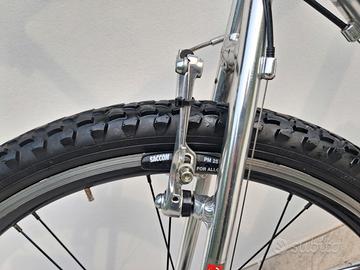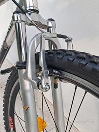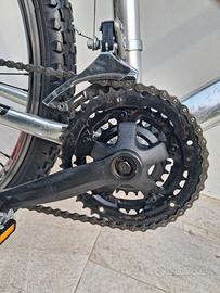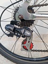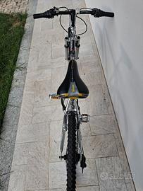 Bicicletta in alluminio con cerchi in alluminio alleggeriti da 26. Cambio shimano Tournwy da 21 rapporti (7 dietro e 3 davanti). I copertoni aono praticamente nuovi, utilizzati solo in un paio di occasioni dato che teniamo la bici come riserva delle altre mtb. La taglia dovrebbe essere una m, io sono alto 177cm e alzando la sella ho una posizione decisamente comoda. prezzo assolutamente TRATTABILE