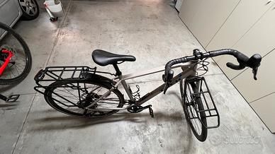 La 920 è una bici da cicloturismo tuttofare per vivere all'insegna dell'avventura, completa di portapacchi anteriore e posteriore per una capacità di carico sorprendente. Colore : Matte Sandstorm Taglia M