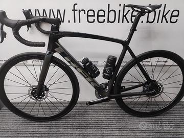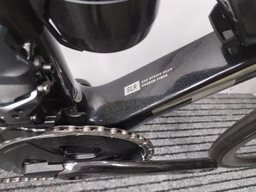 Forcella: Émonda SLR full carbon, cannotto conico in carbonio, passaggio cavi freno interno, disco flat mount, perno passante 12x100mm