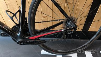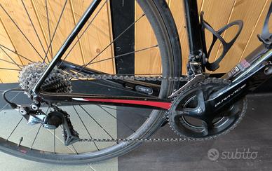 Bici da corsa TREK Emonda SLR 9 totalmente in carbonio misura 54. Componenti e allestimento originali. Componentistica tutta SHIMANO DURA-ACE. Cerchi in carbonio, cuscinetti in ceramica (ridottissimo attrito). Bici ultraleggera: peso nominale dichiarato da TREK circa 6,0 kg. Tutto in buone condizioni, in quanto usata saltuariamente. Vendo (a malincuore) perché sostituita con bici gravel. Vendo come da foto (escluso pedali). Preferibile consegna a mano; eventuale spedizione a cura e spese dell'acquirente. Bici visionabile presso negozio in zona.