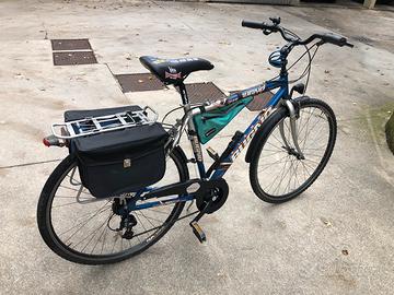 Bicicletta Trekking 28 uomo con telaio in alluminio(tubo orizzontale 56Cm e piantone sella 54 Cm)marca Gianni Bugno con sottogruppo cambi/comandi Shimano Alivio e shimano Acera e freni Shimano 404 il ciclo è provvisto di nuove borse da viaggio Ritiro in loco