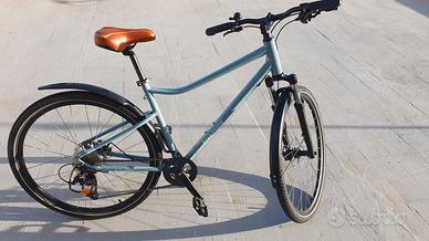 Bici trekking RIVERSIDE 500 celeste Taglia M Ruote 28 Freni a disco Ammortizzatore anteriore Parafanghi, campanello, portaborraccia, cavalletto e copertoni antiforatura inclusi. Ritiro zona Torpignattara.