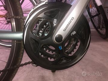 telaio in alluminio XL (io sono alto circa 1.80) cambio Shimano Acera 24 rapporti . Ammortizzatore regolabile front . Bici adatta sia per spostamenti brevi che per lunghi run. Dotata di portapacchi e parafanghi . Prezzo leggermente trattabile se trattativa veloce (a breve dovro tradlocare )No spedizione