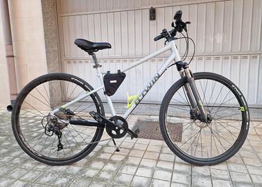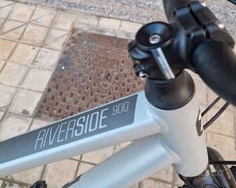 Per completo inutilizzo, vendo Bici BTWIN Riverside 900 taglia M. Nuovissima comprata per mia moglie ma utilizzata pochissime volte per giri in città. Ruote da 28", copertoni 700x38 Trekking Speed Protect+ e freni a disco. Il telaio è 100% in alluminio extraleggero 6061, garantito a vita. Sella ErgoFitsystem, Forcella a Sospensione SUNTOUR NCX SF17 Monocorona, Cassetta10 velocità, Freni a Disco idraulici Tektro. La bici può essere utilizzata sia per la strada che fuoristrada leggero. Alla bici come si vede in foto sono stati sostituiti : Manubrio ergonomico, sella extracomfort e attacco manubrio più corto. Al prezzo di vendita sono compresi Sia tutti i pezzi originali che quelli acquistati a parte. Nel prezzo sono compresi: 2 leve levacopertoni, camera d’aria di scorta, 2 faretti posteriori led, 1 faro anteriore led, 2 luci led di posizione sella comfort, sella originale (mai usata), sella extralarge ,manubrio originale (mai usato), 2 coprisella gel per le due selle. E’ gradito il solo contatto telefonico 3208671810.