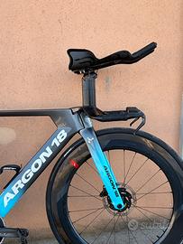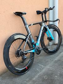Vendo vero missile terra-aria: bici da triathlon e cronometro Argon 18 E118 PRO, telaio carbonio, anno 2021, versione ufficiale Team Astana. Ideale per triathlon olimpico, medio, Ironman 70.3 e Ironman, oltre che per cronometro su strada. Taglia M, indicata per altezza 175–185 cm. Colore racing Team Astana, estremamente elegante e aggressivo. Allestimento top: •Gruppo SRAM Force (precisione e affidabilità da gara) •Pedali Favero Assioma Look (misuratore di potenza, ideali per allenamento e gara) •Prolunghe Deda Jet Clip-On (posizione aerodinamica da crono) •Ruote Fulcrum Wind 75 in carbonio, profilo alto, massima aerodinamica Bici perfetta per triathleti evoluti, agonisti e appassionati di time trial, già pronta per gare e allenamenti ad alto livello. Condizioni: •Condizioni eccellenti / pari al nuovo •Sempre mantenuta con cura •Venduta con viteria e ricambi originali Argon 18 Prezzo poco trattabile, coerente con qualità, allestimento e condizioni. 📦 Possibile spedizione 💬 Per informazioni contattatemi in chat