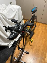 Bicicletta crono triathlon Argon 18 E117-TRI in ottime condizioni, tenuta maniacalmente (in casa), revisionata in primavera. Manubrio Deda Elementi, prolunghe Profile Design in carbonio, portabarrette Profile Design, sella Fizik Tritone, porta oggetti posteriore, portaborraccia posteriore. Taglia S, Ultegra R8000 50/34 - 11/28, pedivelle 170 mm. Viene venduta senza ruote e pedali. Possibilità di avere pedivella Powermeter Stage (+200€) e borraccia anteriore Vision (+120€). Non vendo a pezzi.